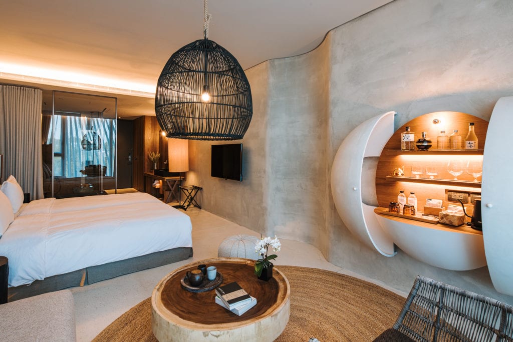 淡水島宇居酒店,以簡約設計融合河岸風景,打開窗就是療癒的淡水河與夢幻夕陽。