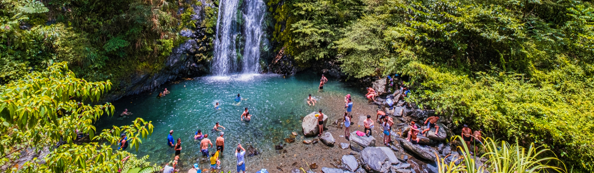 瀑布下方有天然深潭,夏日景致沁涼迷人,但因山區水域變化無常,僅建議岸邊觀景拍照,不宜戲水