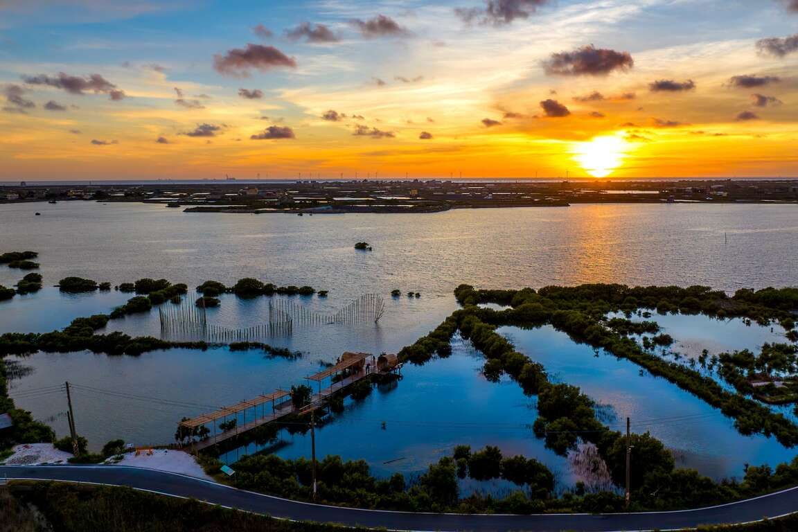 濕地內設有賞鳥平台與裝置藝術,是觀賞候鳥、體驗社區藝術創作的絕佳去處。傍晚時分,水面映照天空,宛如一幅動人的自然畫布。