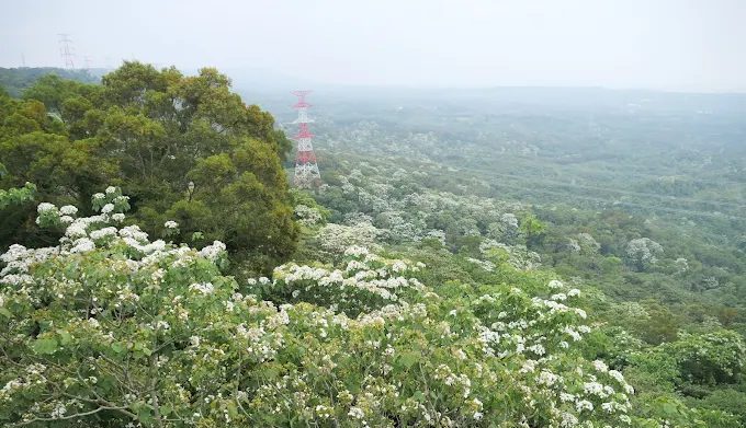 登頂後可俯瞰樹林市區與桃園景緻,遠眺大棟山、青龍嶺。每到秋季,滿山芒草隨風搖曳,銀白浪潮與夕陽交織,成為攝影與 IG 打卡的熱門場景。