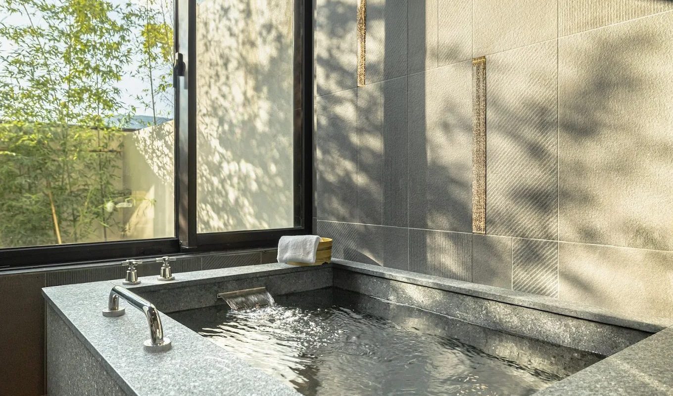 礁溪寒沐酒店的一大亮點是 全房型皆設有溫泉浴池,讓旅客隨時都能享受專屬湯泉。