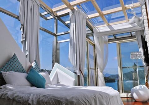 淡水島宇居酒店,以簡約設計融合河岸風景,打開窗就是療癒的淡水河與夢幻夕陽。