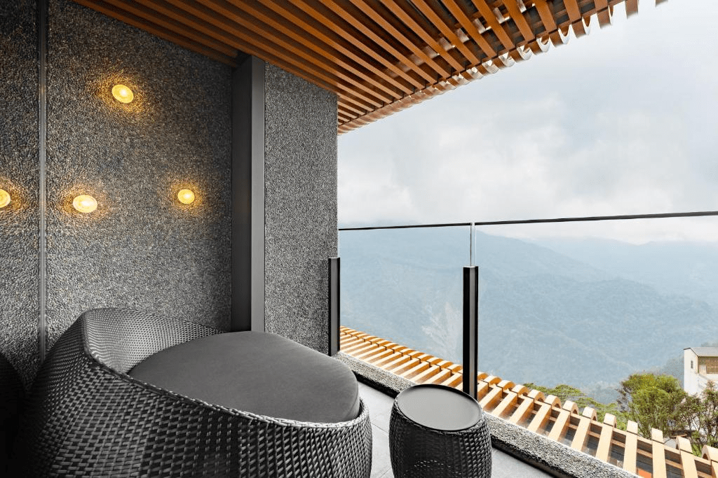 房間以自然木質調與暖色燈光為主,設計延續「靜中有景」的理念。打開窗簾,晨霧、綠影與陽光隨時流動於眼前;夜裡,泡湯時聽著風聲,彷彿連思緒都慢了下來。