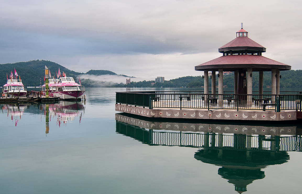 - 湖畔早晨霧氣飄渺,傍晚時分可欣賞水面倒影。