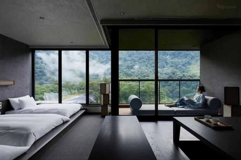 這是一座融合現代設計與溫泉文化的旅宿,簡約中帶著溫度,