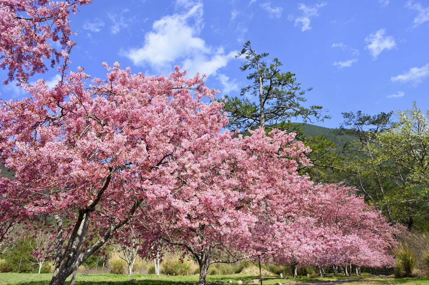 離開營區不遠,便能走進桃山瀑布步道或落羽松林小徑,欣賞山嵐與溪谷的交錯光影。秋季時的武陵觀景台,是眺望整片楓紅的絕佳位置;春天則有櫻花沿途盛開,山色如畫。步道平緩易行,適合親子同遊,想騎自行車的旅人也能輕鬆環繞草原一圈,感受高山清風。