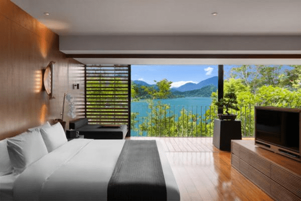 位於南投日月潭北岸半島的雲品溫泉酒店,是湖邊最具代表性的高端溫泉飯店。客房可眺望湖光山色,部分房型設有私人湯池,讓旅人能靜靜浸泡於熱湯中,遠眺晨霧中的湖面。