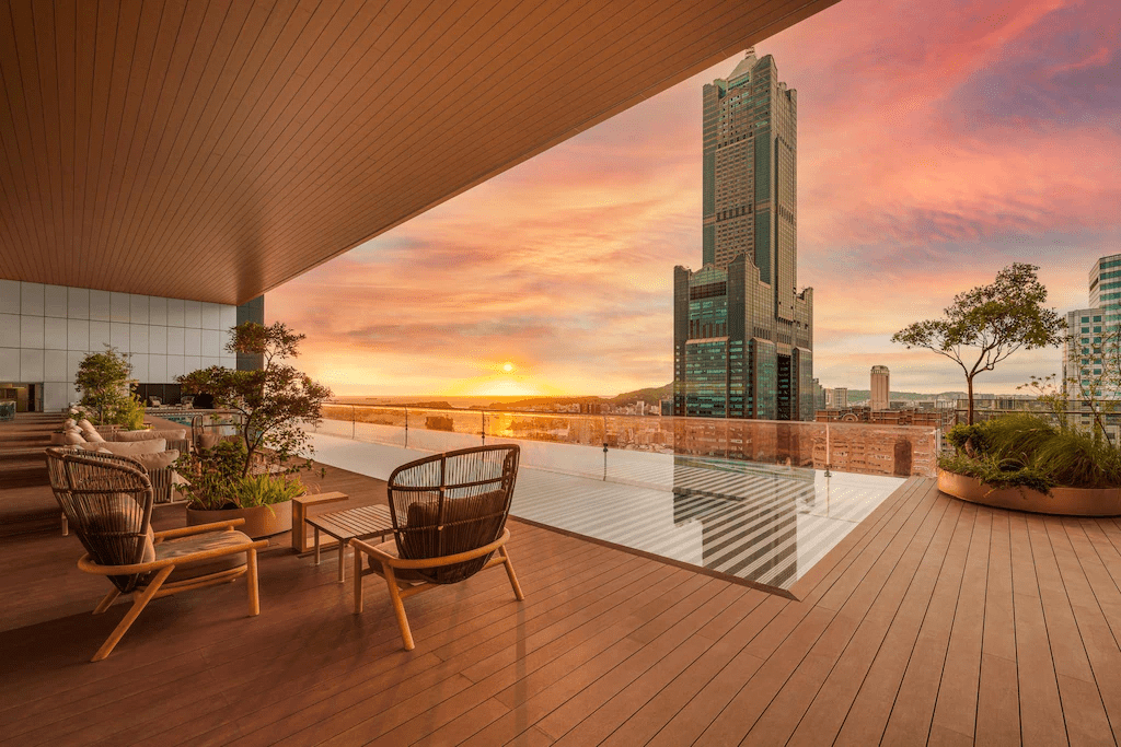 淡水島宇居酒店,以簡約設計融合河岸風景,打開窗就是療癒的淡水河與夢幻夕陽。