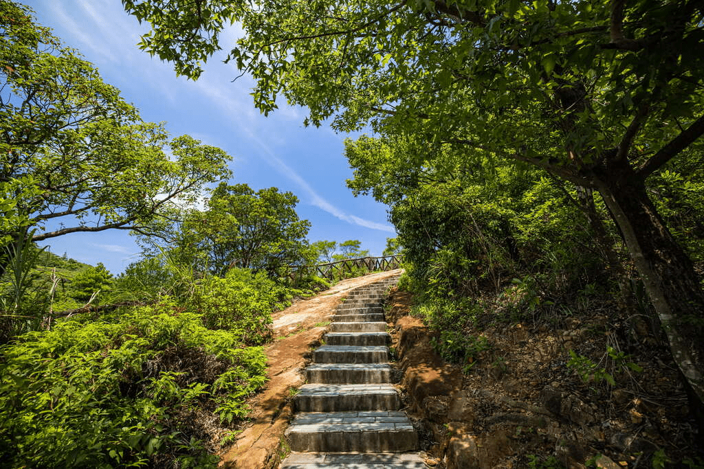 微風吹過樹梢,山氣在城市邊緣緩緩升起。腳下的階梯通往林蔭深處,光線從葉縫灑落,遠方的高樓變得渺小。那是一種介於自然與都市之間的呼吸——當你一步步向上,風、陽光與鳥鳴都像在迎接一場溫柔的出走。
