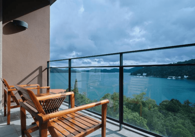 日月潭明宿位於魚池鄉,主打「湖景陽台房型」,旅客可在房間內欣賞壯麗湖面與山巒倒影。