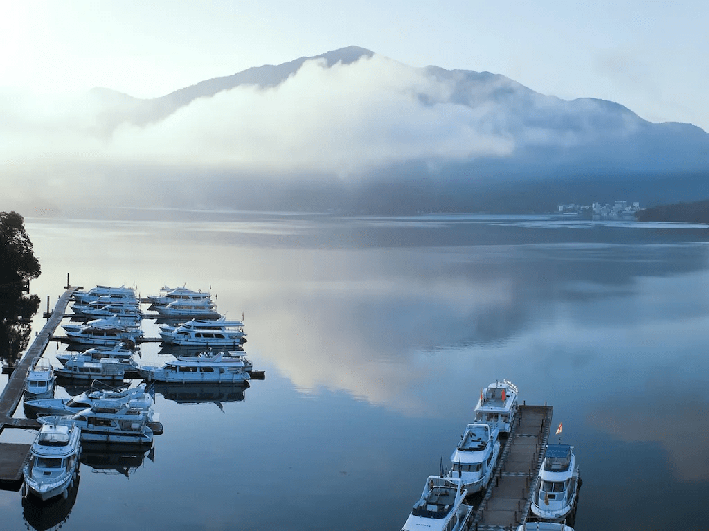- 獨特雲霧與湖光相映