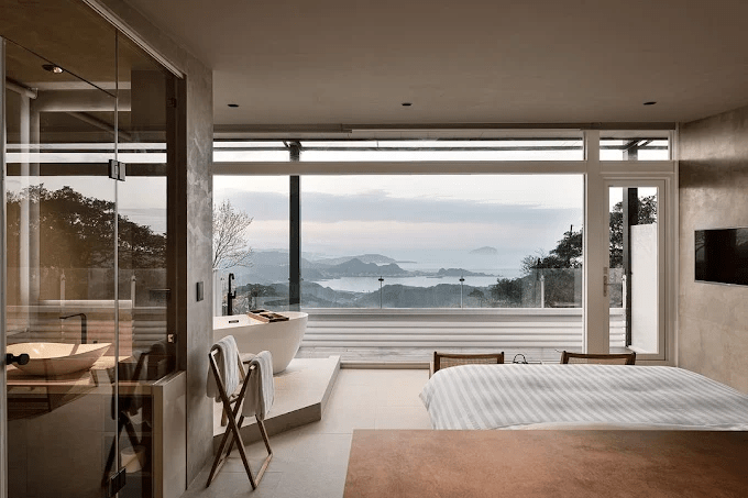 淡水島宇居酒店,以簡約設計融合河岸風景,打開窗就是療癒的淡水河與夢幻夕陽。