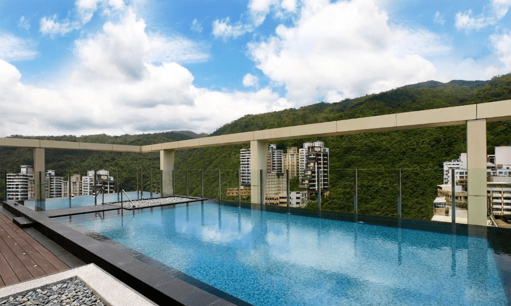 那天走進大廳時,外頭還飄著微微的風,腳步被木質調的暖意輕輕收住。電梯往上時,能感覺自己的呼吸變得慢一些,好像旅程真正開始了。頂樓的風從四面吹來,泡在池裡的那一刻,什麼聲音都被留在遠處,只剩下水面輕晃的亮光,像是在說「今天,就先這樣慢著吧」。