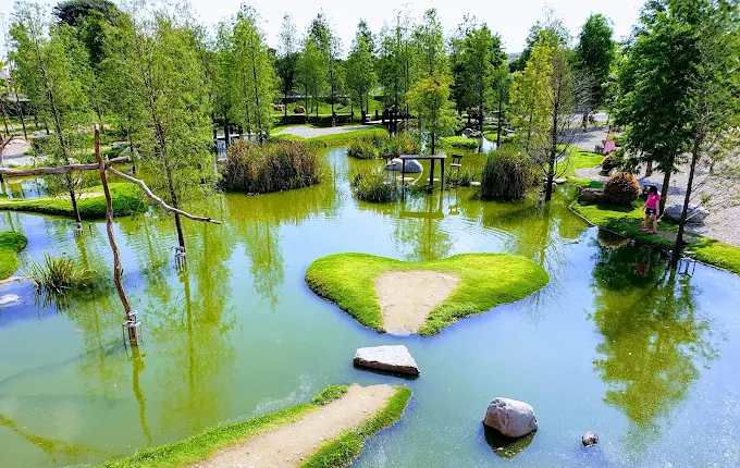 這裡免費入園,很適合親子、情侶或朋友同行。園區動線簡單,怎麼走都好看,早上光線柔和、下午則多了一點度假感。找個空曠草地坐下,風一吹過來,會有一種「其實不急著回家」的感覺。