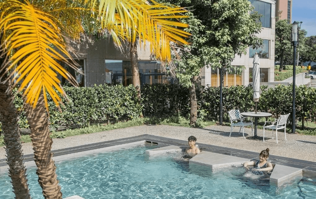 飯店設有露天水療池、SPA 區與私人湯屋,平日可購「湯屋券」(約 2 小時)或「泡湯+午餐」套票,整體體驗時間約三小時,非常適合上班族中途偷閒。