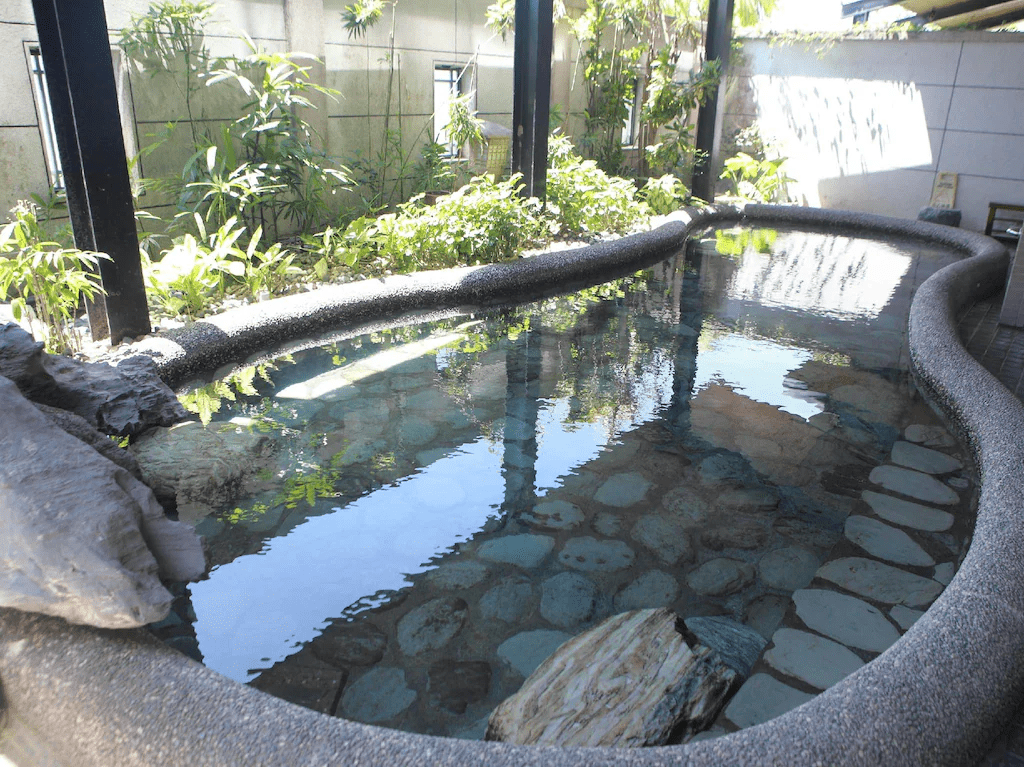 山泉飯店共有一百六十餘間客房,從雙人雅緻房到家庭套房皆設有專屬溫泉浴池。溫泉水為無色無味的碳酸氫鈉泉,泉質柔和不刺激,特別適合肌膚敏感或長途旅人放鬆泡湯。