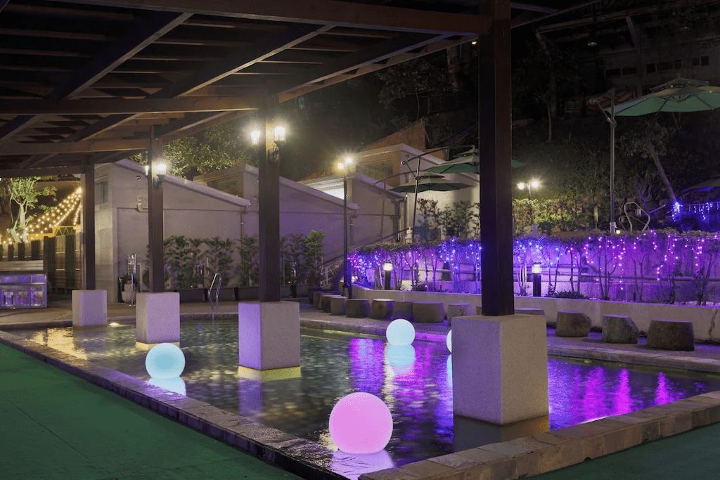 清新溫泉飯店位於烏日大肚山上,視野開闊,是台中少數能一邊泡湯、一邊看夜景的溫泉飯店。溫泉區與戶外空間相互連結,天氣涼時特別舒服。