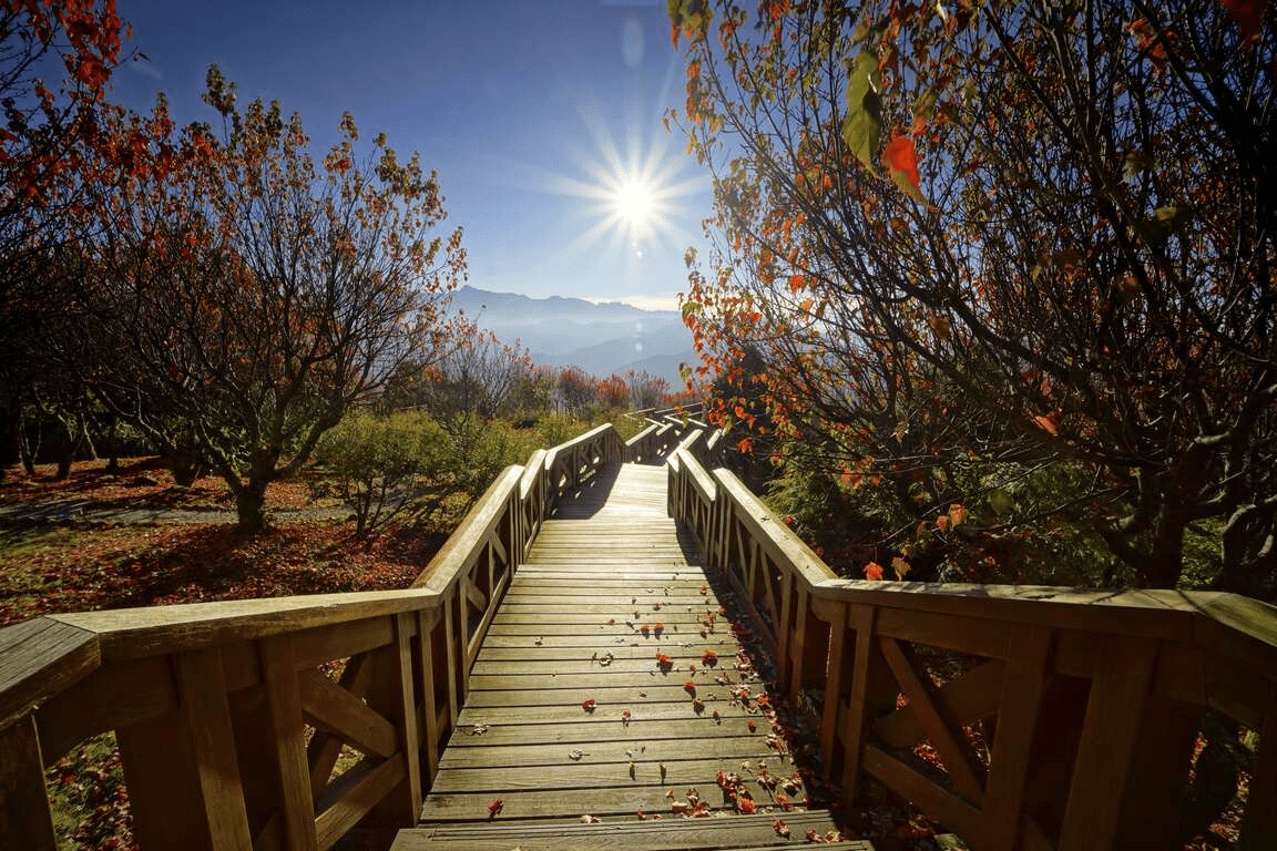 清晨漫步杉林步道,午後靜賞山嵐流動,