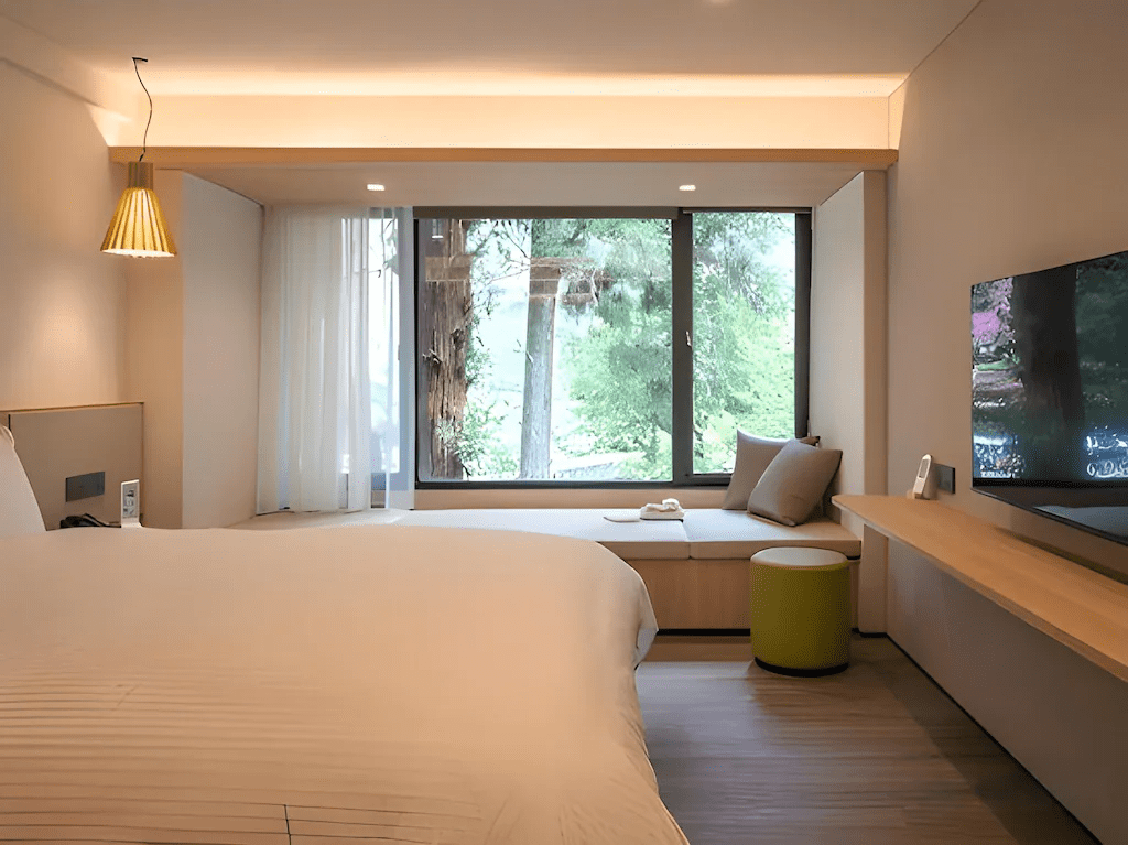 淡水島宇居酒店,以簡約設計融合河岸風景,打開窗就是療癒的淡水河與夢幻夕陽。