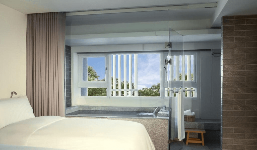 晶泉丰旅共有 122 間客房,房間設計簡潔而溫暖。幾乎所有房型都配置半露天湯池或室內獨立溫泉池,讓旅客可以在自己的空間裡慢慢泡湯。