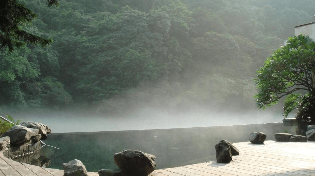 湯池區較大,夜裡能聽見水聲入眠,整體氛圍偏沉靜療癒。