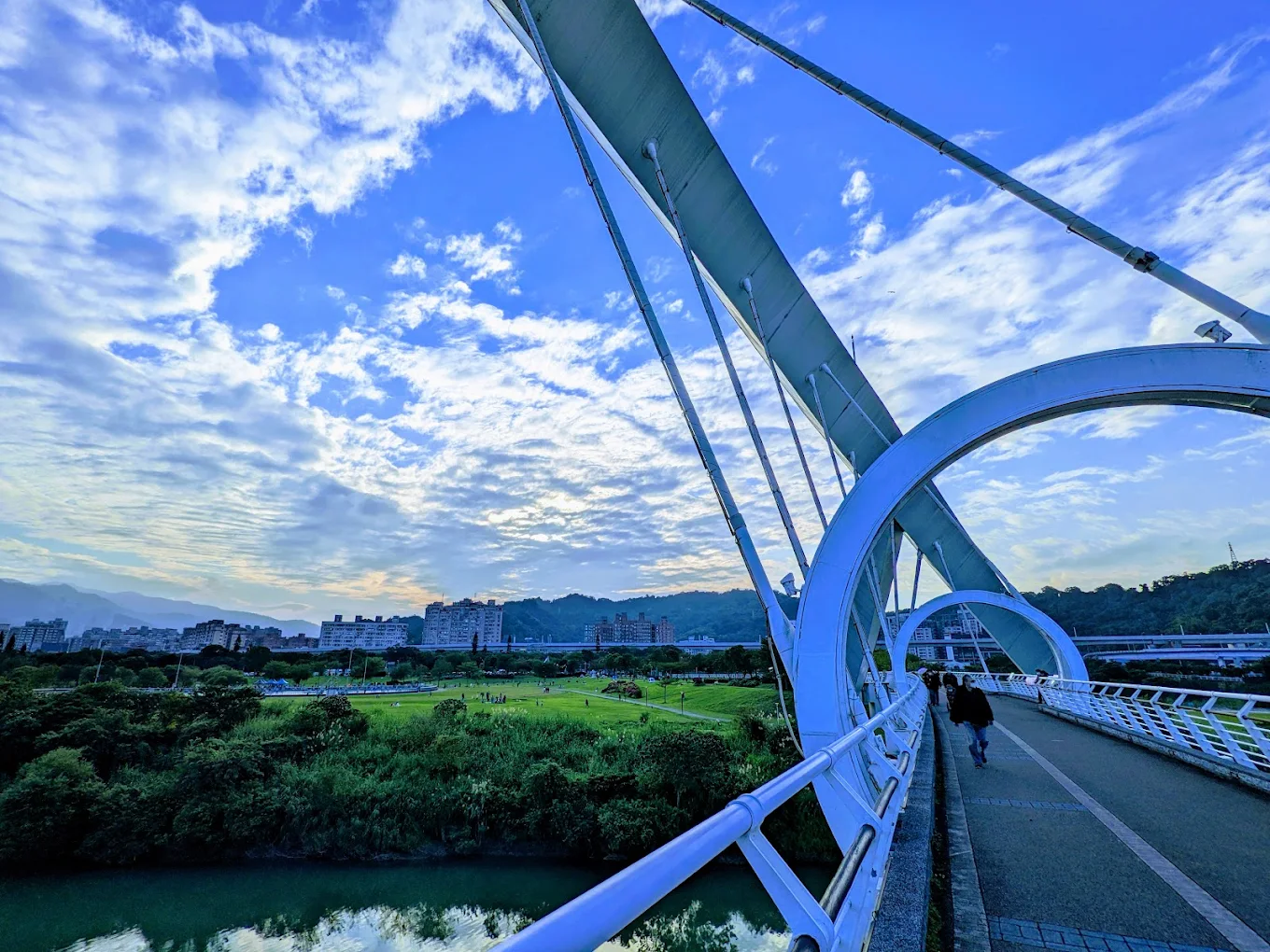 陽光運動公園最迷人的地方,不只是設施很多,而是它真的很像一個可以待上半天甚至一整天的河濱公園。你可以白天先帶孩子去遊戲場放電,接著在草地野餐,傍晚再沿著自行車道散步或騎車,整個節奏很自然。再加上它和陽光橋、新店溪水岸系統連在一起,所以不只是單點公園,更像新店河濱休閒路線裡非常核心的一站。
