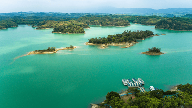 在台南烏山頭水庫看見珊瑚潭湖景鋪展開來,午後微風裡一步步走進水庫風景區