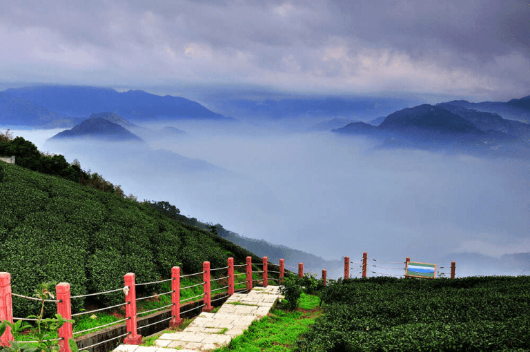 在嘉義梅山沿著二尖山步道慢慢走,午後茶園與山嵐一起把視線帶遠